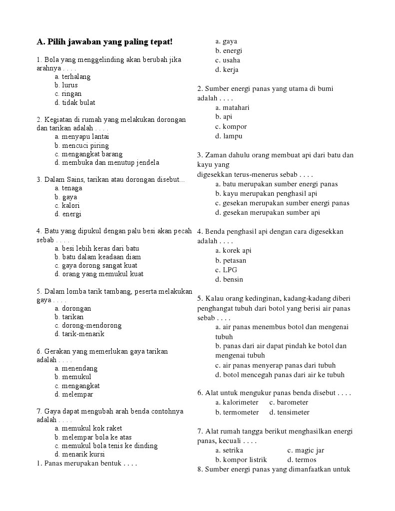 Soal Pilihan Ganda: Ini adalah format paling umum. Siswa diminta memilih jawaban yang paling tepat dari beberapa pilihan yang tersedia.