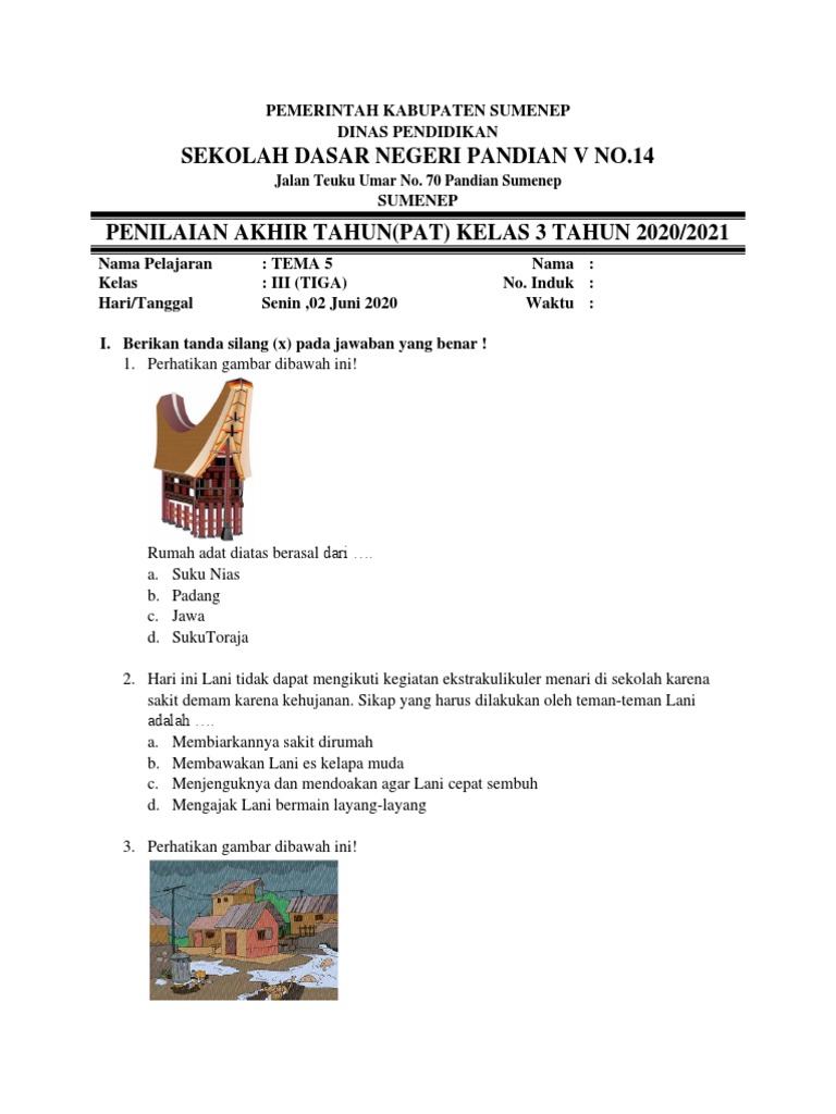 Berikut adalah beberapa contoh soal PAT tema 5 yang dapat digunakan sebagai latihan: